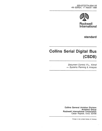 Collins Serial Digital Bus (CSDB) 1985 Planning & Analysis Manual (part# 523-0772774-004)