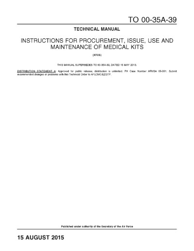 INSTRUCTIONS FOR PROCUREMENT, ISSUE, USE AND MAINTENANCE OF MEDICAL KITS (part# 00-35A-39)