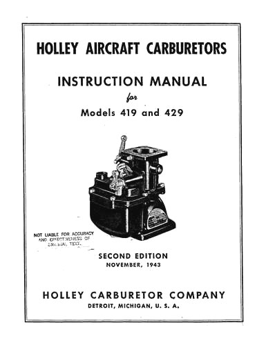Holley Carburetor Company 419 & 429 Aircraft Carburetors Installation & Maintenance (part# HO419,429-43-IN)