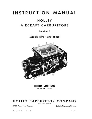 Holley Carburetor Company 1375F, 1685F Aircraft Carburetors Instructions 1941 (part# HO1375F,1685F-IN-C)