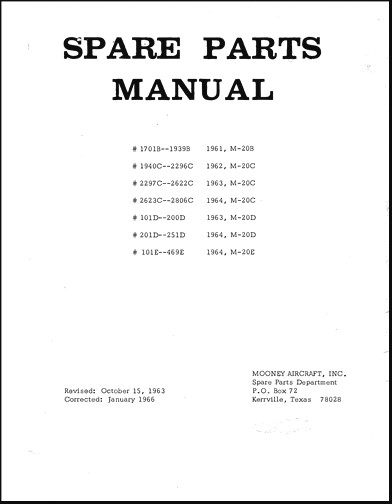 Mooney M20B, C, D, E 1961-64 Parts Catalog (part# MOM20SER61-64)